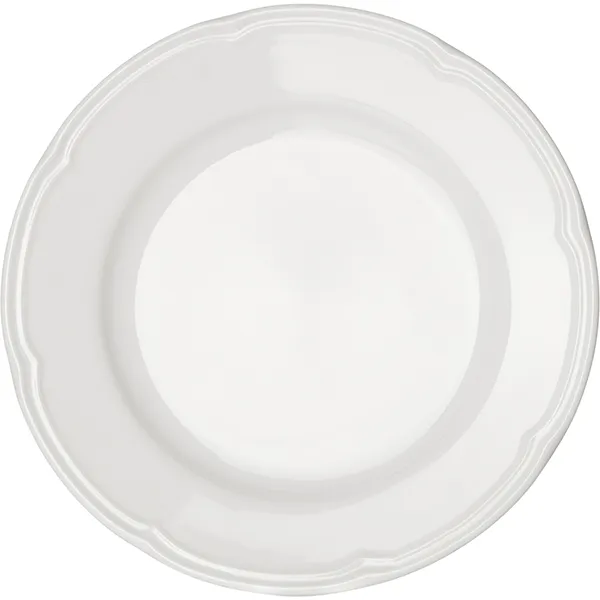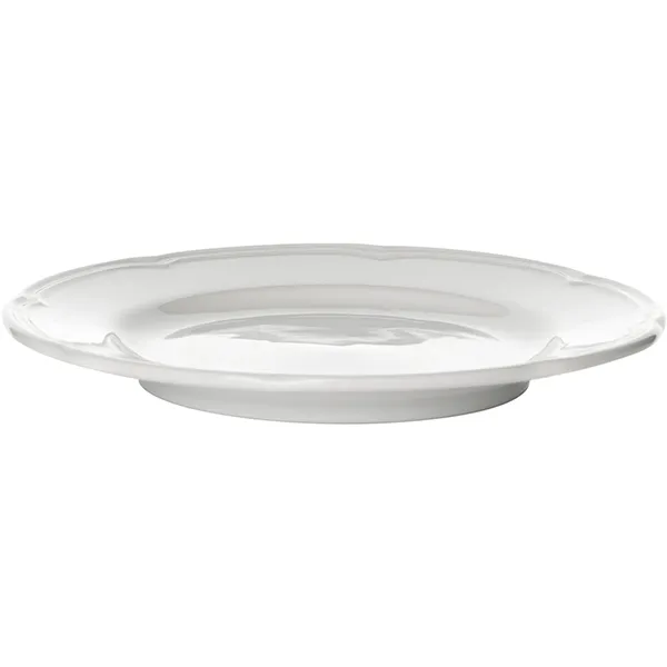 Тарелка «Увертюра» от производителя Tognana выполнена из плотного белого фарфора. Классическая форма дополнена рельефным «музыкальным» профилем по краям – декоративная волна усиливает жесткость борта.