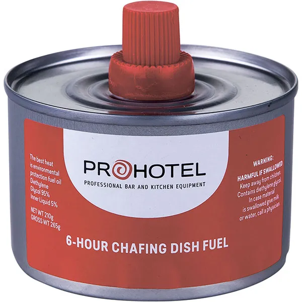 Подогрев и поддержание оптимальной температуры блюда удобно при проведении различных мероприятий. Небольшая емкость содержит субстанцию, которая обеспечивает горение на протяжении 6 часов. Объем и диаметр идеальны для того, чтобы компактно разместить емкость под посудой.