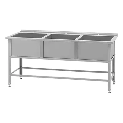 Ванна моечная ВМСб-530/3 серии Base – это надежное решение для профессионального использования. Имеет три чаши, каждая размером 430×430×250 мм, выполненными из нержавеющей стали AISI 430 толщиной 0,8 мм и усиленными ребром жесткости на днище. Конструкция включает в себя каркас из оцинкованной стали толщиной 1,5 мм, что обеспечивает дополнительную прочность и устойчивость изделию. Полка для смесителя имеет три отверстия для монтажа смесителей. Регулируемые опоры и угловой профиль ножек позволяют легко адаптировать установку к различным условиям. В комплекте идет весь необходимый для сборки крепеж.